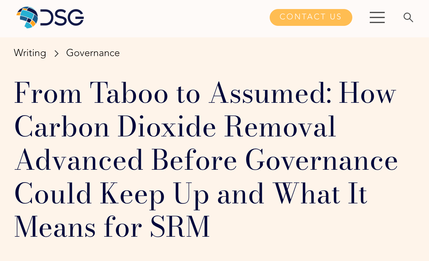 The Alliance for Just Deliberation on Solar Geoengineering (DSG) published a piece last week arguing that carbon removal’s trajectory offers a cautionary tale for solar radiation management. Their argument goes roughly like this: CDR was once considered taboo, but it quietly became embedded in IPCC modeling pathways before policymakers seriously grappled with it. As the field gained legitimacy, private actors and investment moved faster than governance frameworks could keep pace. Ocean iron fertilization proceeded without oversight and damaged public trust. Voluntary verification mechanisms, designed by and for commercial actors, created structural incentive problems. And the resulting pattern, where technical momentum outpaces institutional readiness, is now playing out again in the SRM space, where the stakes are even higher.